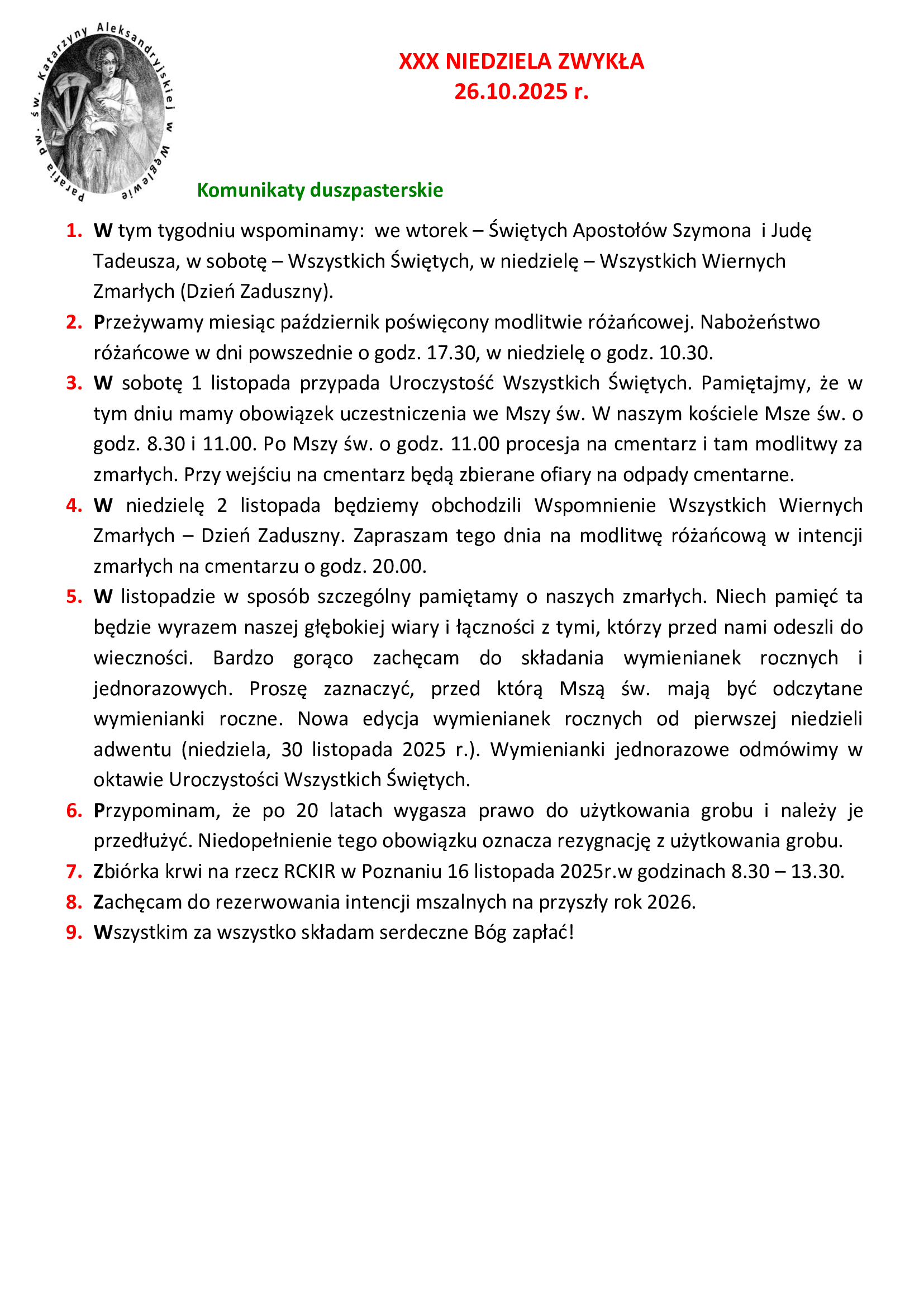 XXX NIEDZIELA ZWYKŁA 26.10.2025 r.