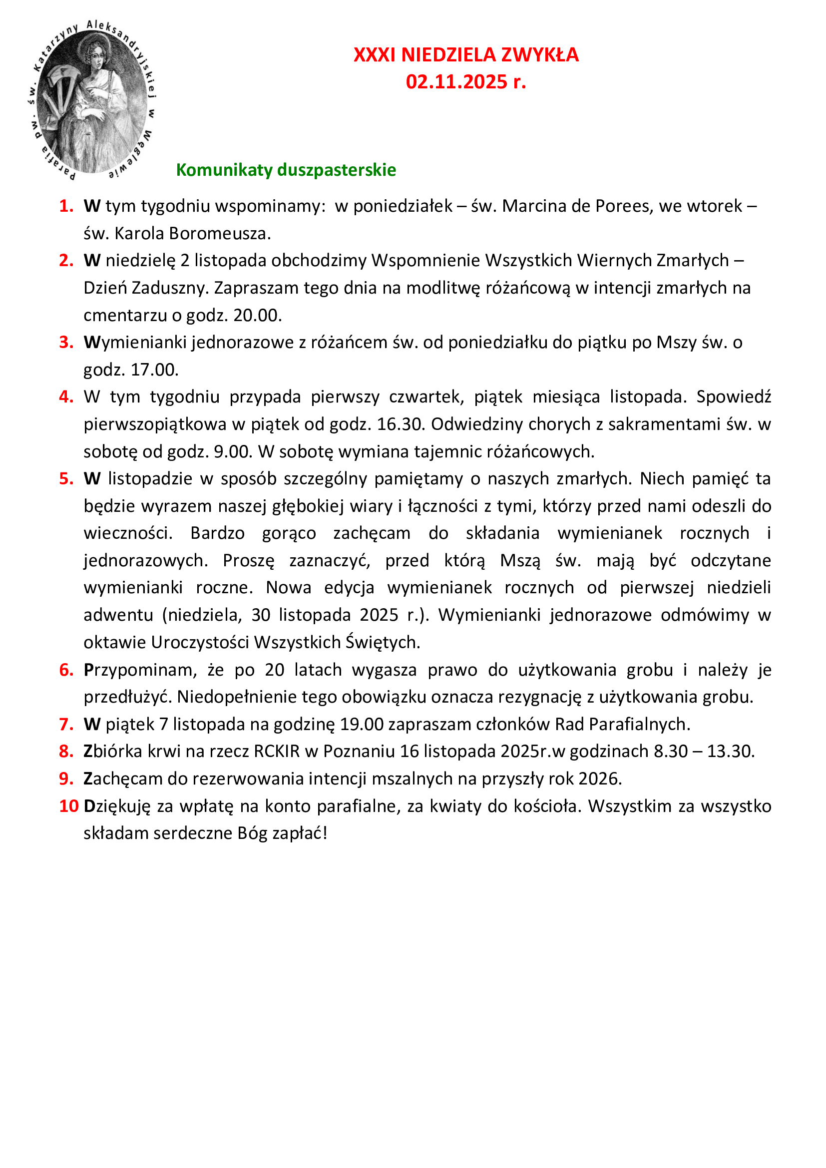 XXXI NIEDZIELA ZWYKŁA 02.11.2025 r.