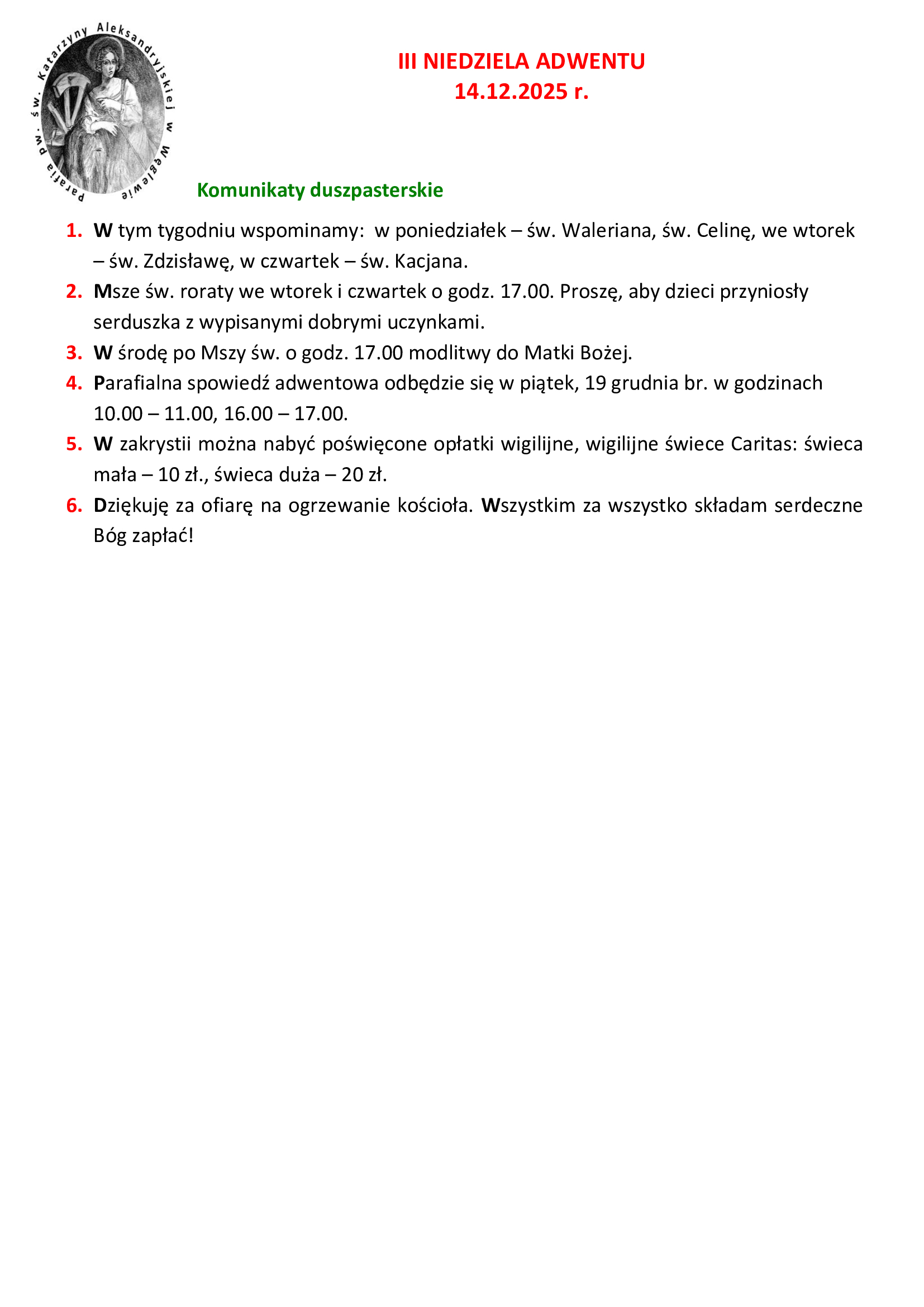 III NIEDZIELA ADWENTU 14.12.2025 r.