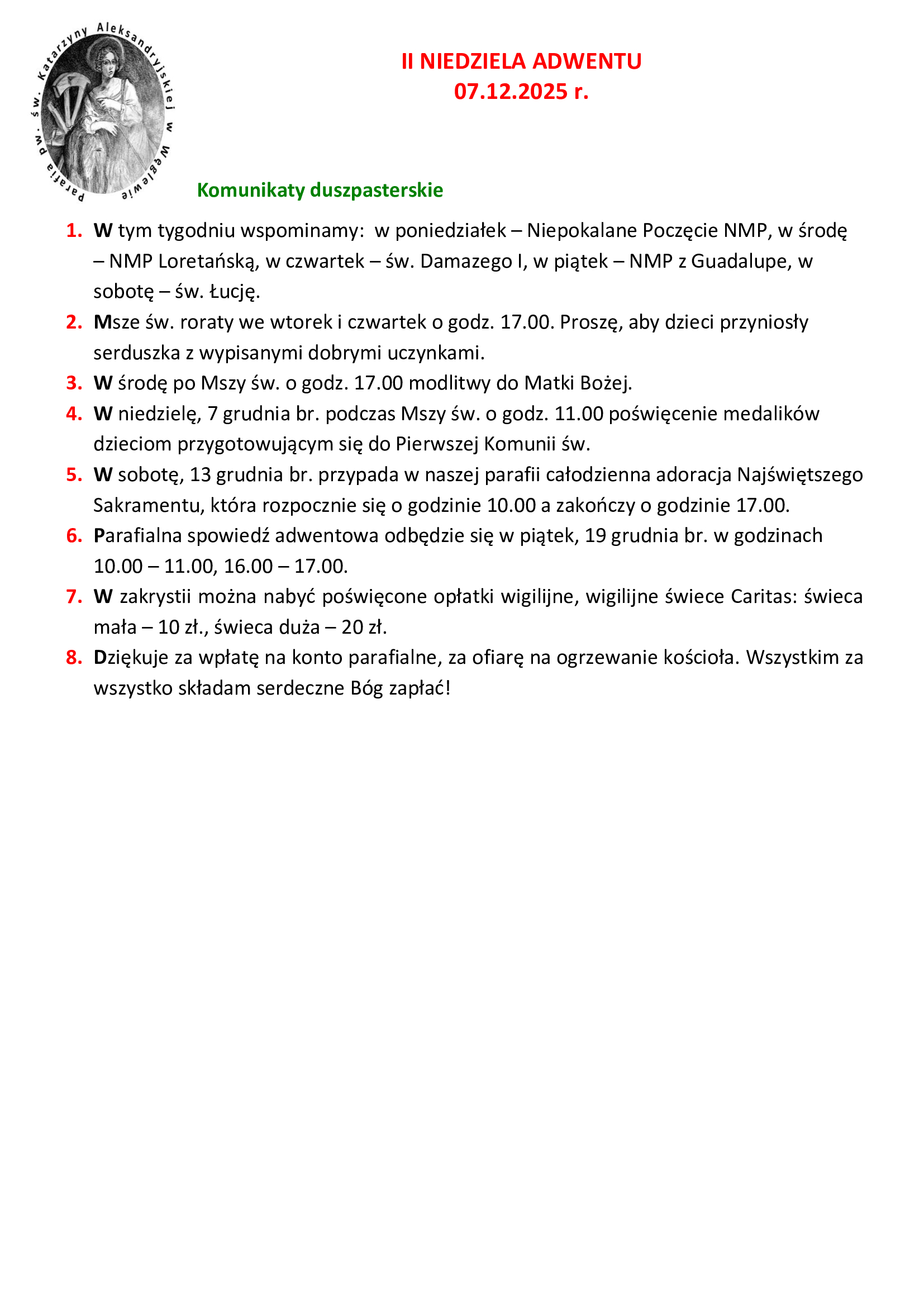 II NIEDZIELA ADWENTU 07.12.2025 r.