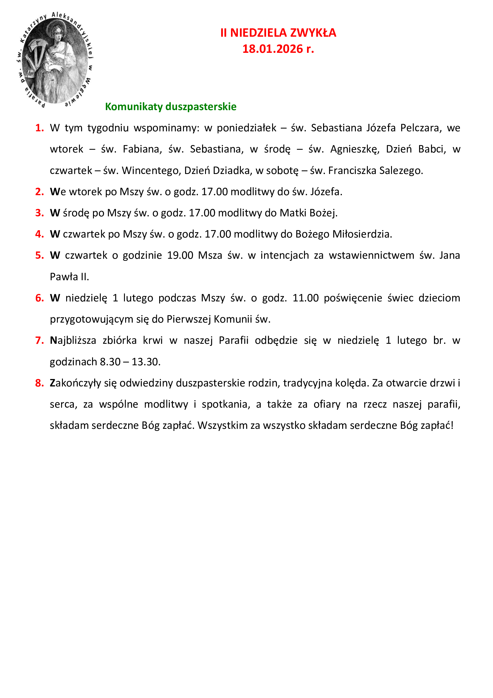 II NIEDZIELA ZWYKŁA 18.01.2026 r.