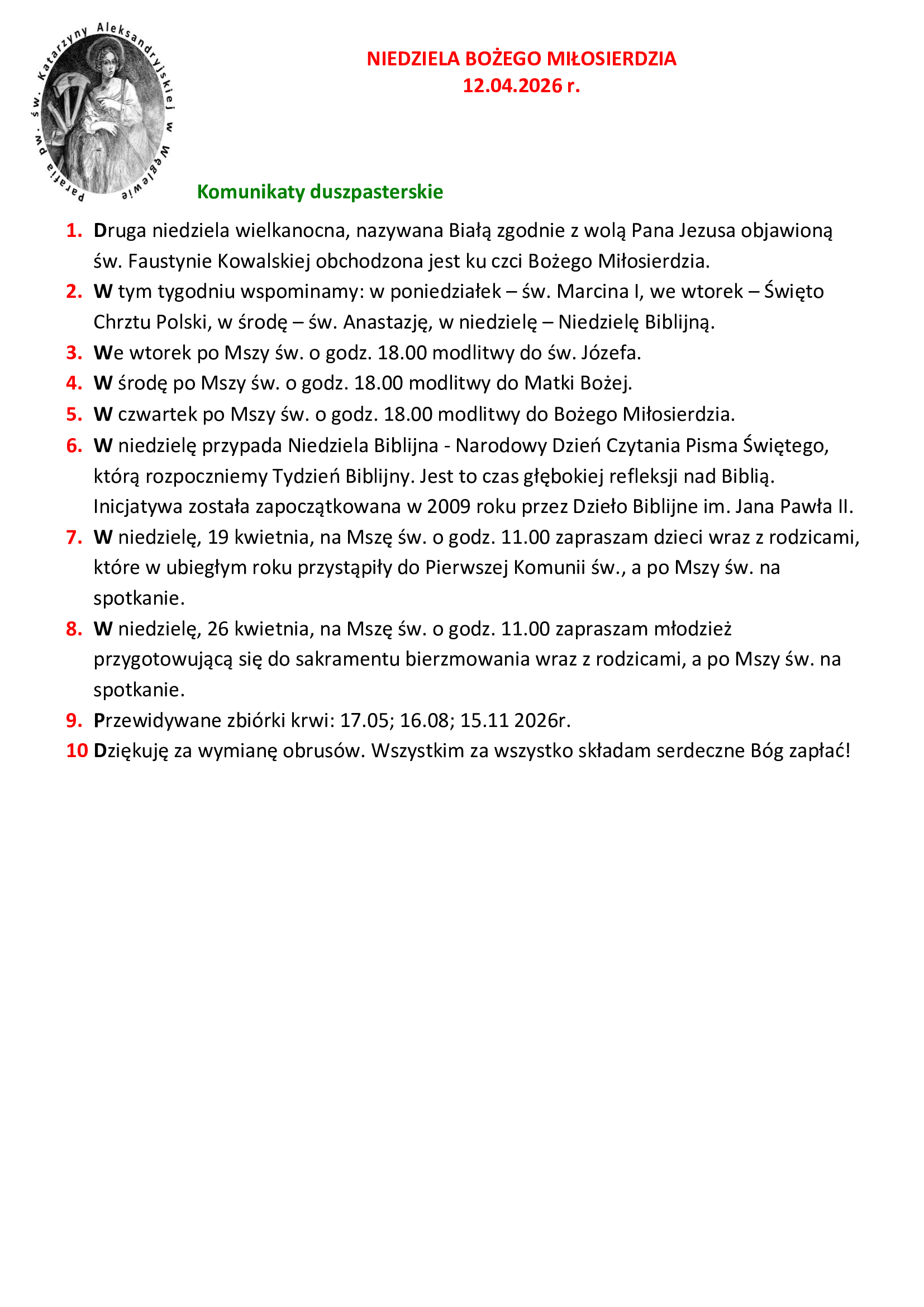 NIEDZIELA BOŻEGO MIŁOSIERDZIA 12.04.2026 r.