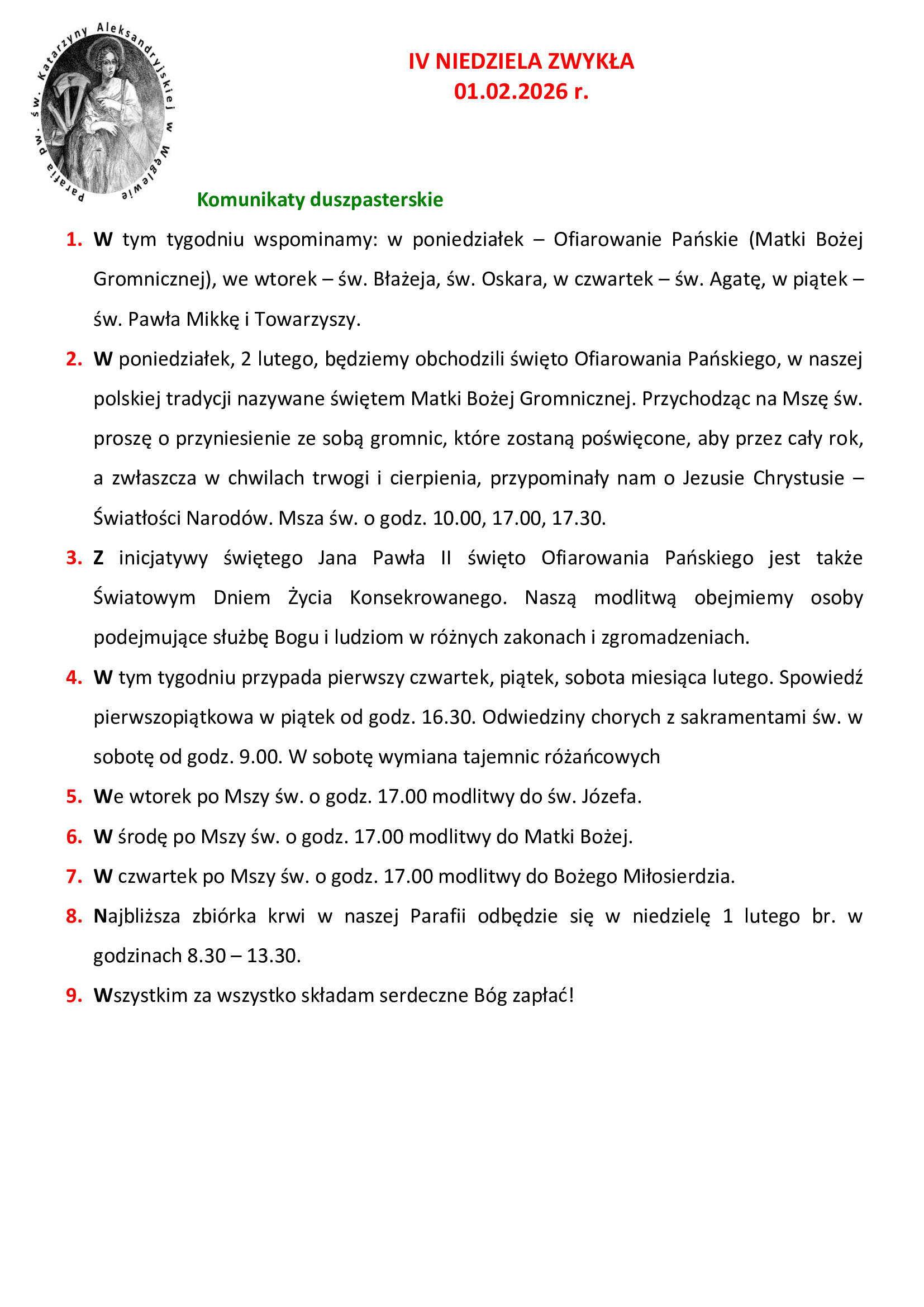 IV NIEDZIELA ZWYKŁA 01.02.2026 r.
